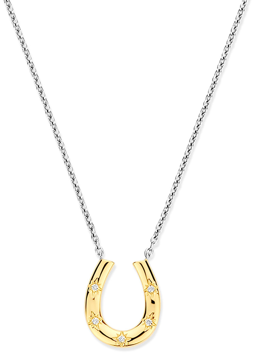 TI SENTO 34084ZY hevosenkenkäkaulakorulla kanavoit onnea; kauniisti muotoiltu premium-925 sterling-hopeasta valmistettu kaulakoru on suunniteltu tuomaan sekä viehätystä että eleganssia. Tässä täyteläisellä keltakullalla päällystetyssä kaulakorussa on herkkä hevosenkenkäriipus, joka on koristeltu kimaltelevilla zirkonioilla, joka luo hienovaraisen mutta kiehtovan kiillon. Kaulakoru on valmistettu huolella herkälle iholle, ja se on nikkelitön ja hypoallergeeninen, mikä takaa kestävän mukavuuden ja kestävyyden. Kaulaketjun pituus 38 – 48 cm. Korun leveys ylhäältä 14 mm ja leveys alhaalta 16 mm.