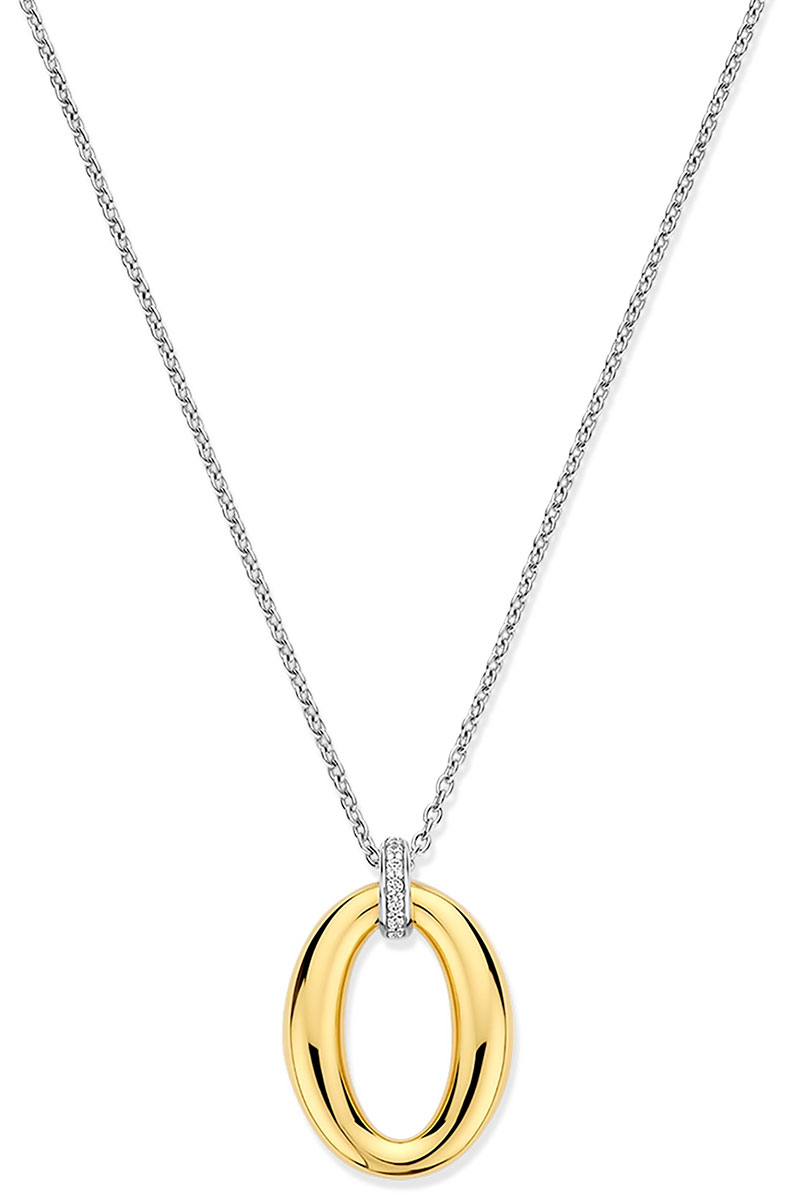 TI SENTO 34091ZY kaulakoru on huolellisesti valmistettu 925 sterling-hopeasta ja päällystetty kirkkaalla keltakullalla valoisan ja ajattoman ulkonäön saavuttamiseksi. Tämän hienon muotoilun ytimessä on ainutlaatuinen soikea riipus, joka on koristeltu tyylikkäästi pavé-istutetuilla zirkonioilla, joka lisää koruun hienovaraista ja kiehtovaa kiiltoa. Säteilevät keltakultaiset sävyt tuovat esiin klassisen vintage-viehätyksen ja tuovat koruun samalla modernia tunnelmaa. Sen nikkelitön ja hypoallergeeninen koostumus takaa poikkeuksellisen mukavuuden ja kestävän laadun, joka sopii täydellisesti jokapäiväiseen käyttöön. Kaulaketjun pituus 38 – 48 cm. Korun leveys 17 mm ja korkeus 24 mm.