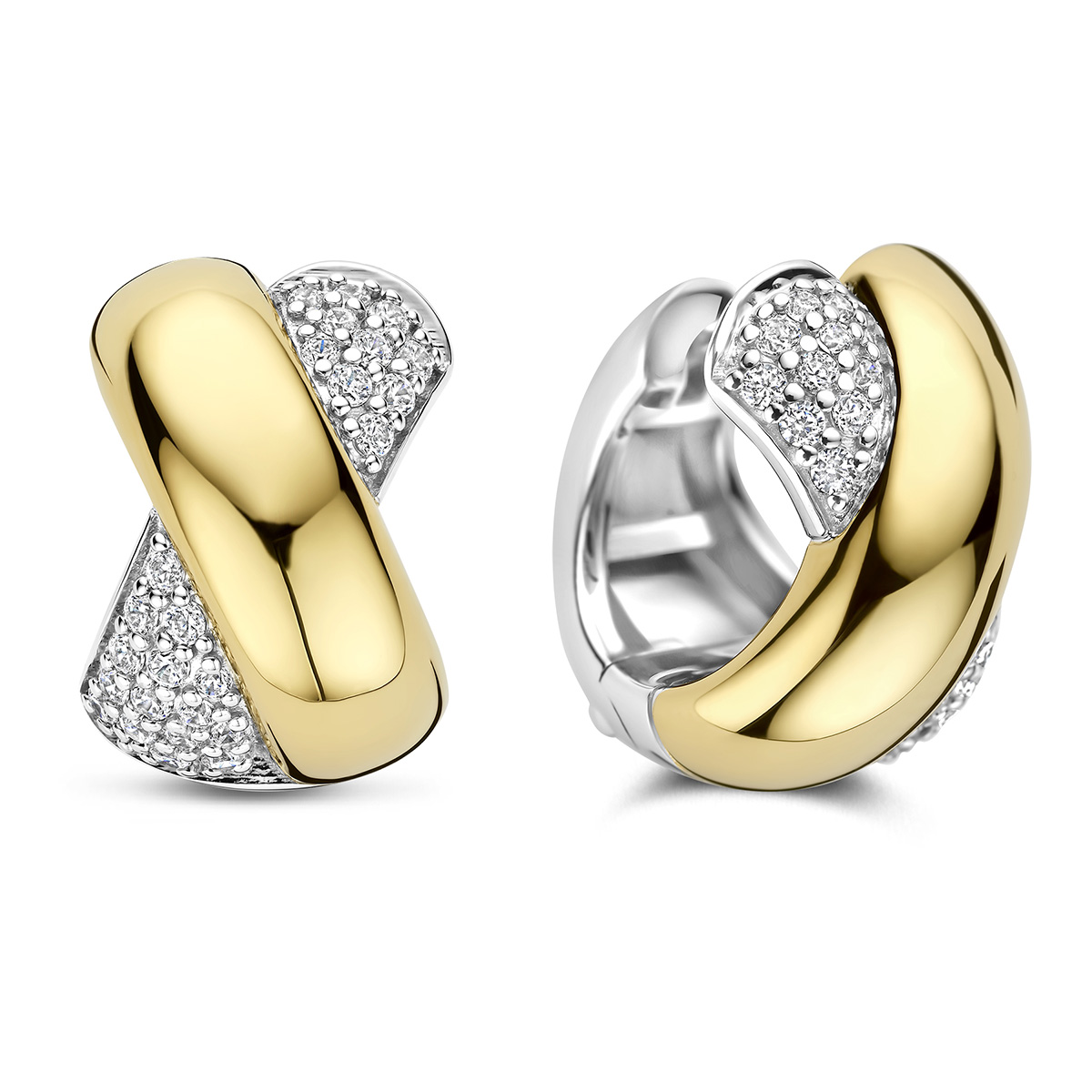 TI SENTO 78047ZY ovat modernin näyttävät ja tyylikkäät crossover-korvakorut, joissa yhdistyvät kullansävyinen pinta ja säihkyvät zirkoniakivet. Korvakorujen muotoilu muodostuu pehmeästi risteävästä kullansävyisestä elementistä, jonka alla kimaltava kivipinta tuo koruihin upeaa valon leikkiä ja ylellistä ilmettä. Kaksivärinen muotoilu tekee korvakoruista monipuoliset ja helposti yhdisteltävät erilaisten korujen kanssa. Leveys 11 mm ja ulkohalkaisija 15,5 mm.
