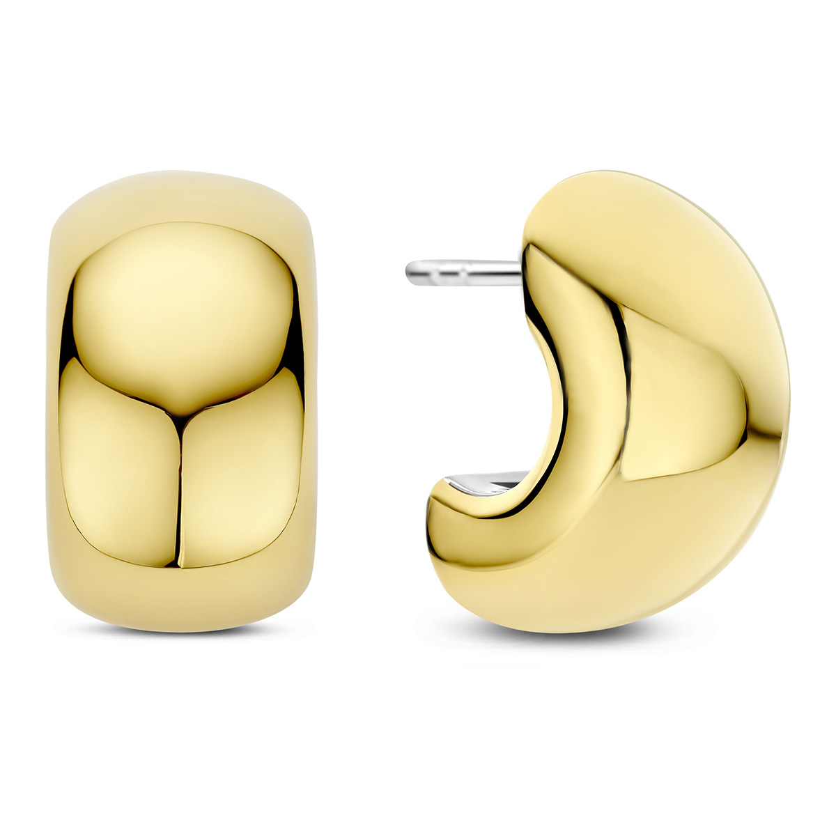 TI SENTO 78048SY -hopeakorvakorut hurmaavat modernilla ja minimalistisella muotoilullaan. Korvakoruissa on pehmeästi kaartuva, puolipyöreä muoto ja kiiltävä kullansävyinen pinta, joka heijastaa valoa kauniisti ja luo koruihin ylellisen ilmeen. 925 sterling hopeasta valmistetut TI SENTO -korvakorut on viimeistelty kullansävyisellä pinnoitteella, mikä antaa niille kestävän ja hienostuneen ilmeen. Ne ovat tyylikäs lisä jokaiseen korukokoelmaan. Pituus 17 mm ja leveys 10 mm.