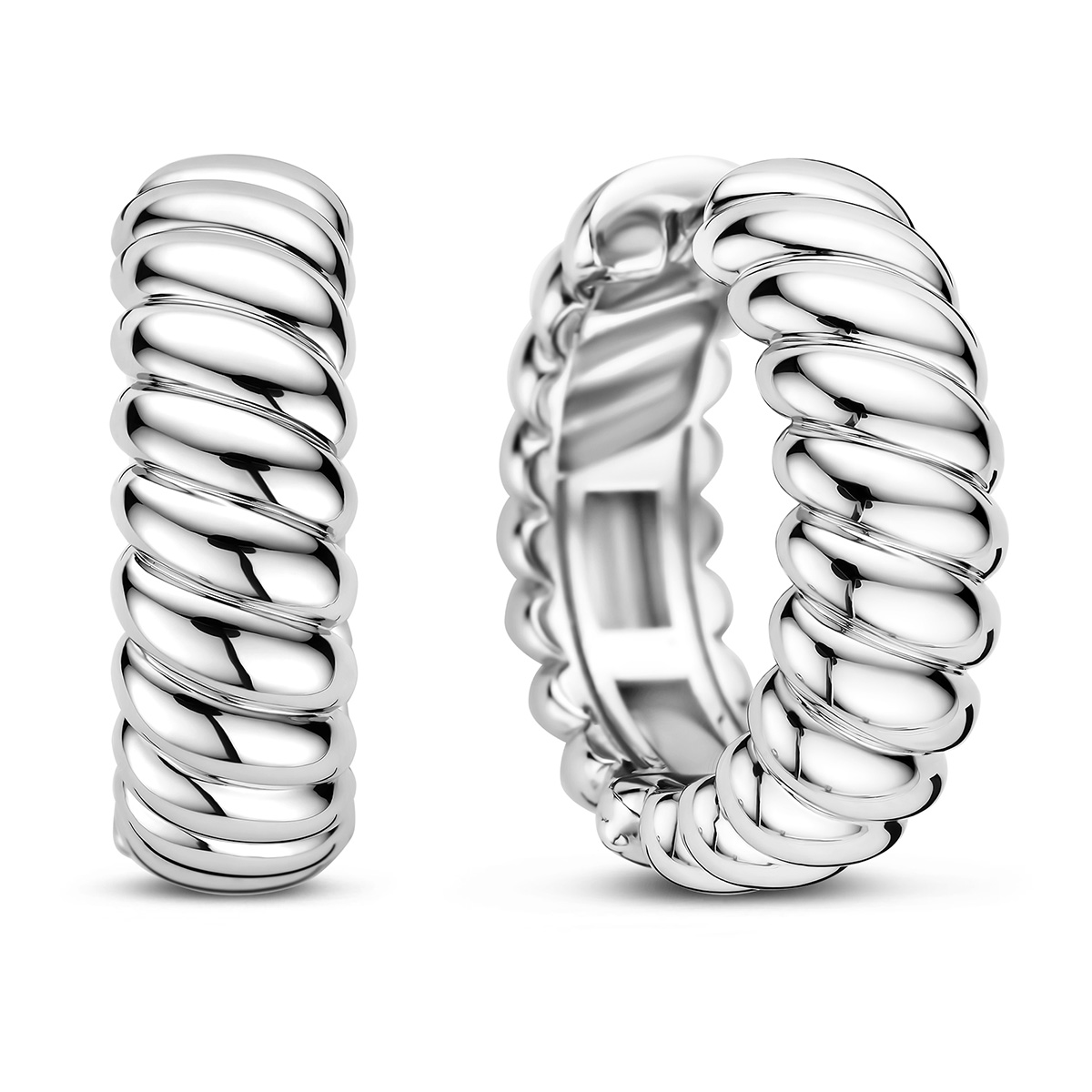 TI SENTO 78066SI -hopeakorvakorut hurmaavat modernilla ja näyttävällä muotoilullaan. Korvakorujen pinta muodostuu kauniisti kaartuvista, toistuvista muodoista, jotka luovat koruihin kolmiulotteisen ja elävän ilmeen. Laadukkaasta 925 sterling hopeasta valmistetut TI SENTO -korvarenkaat ovat huolellisesti viimeistelty ja suunniteltu kestämään aikaa sekä tyyliltään että laadultaan. Leveys 6,5 mm ja ulkohalkaisija 19 mm.