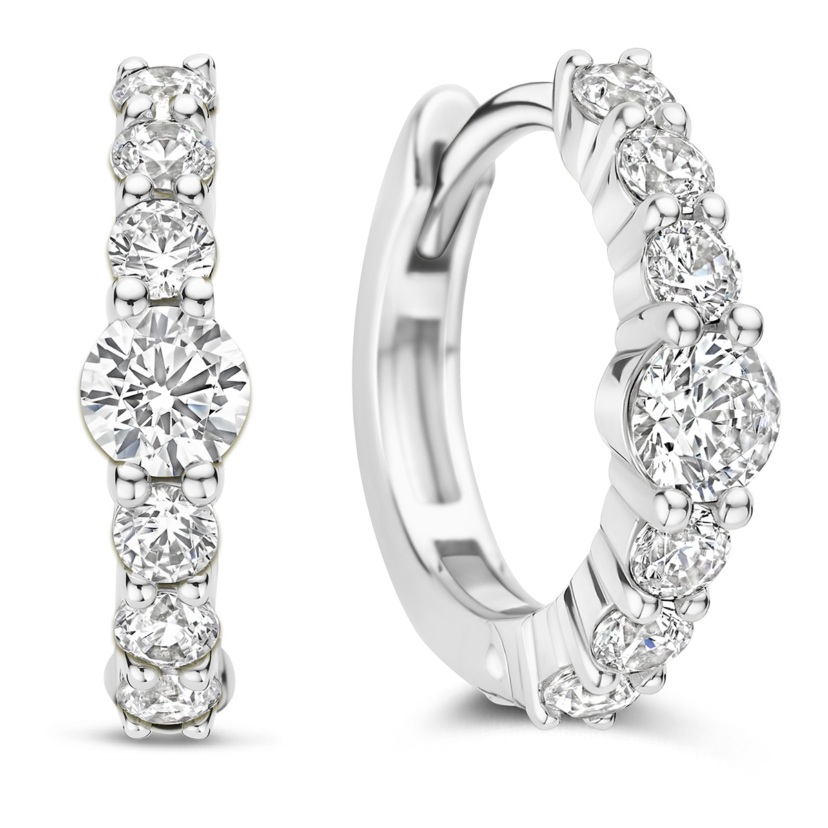 TI SENTO 78073ZI -rengaskorvakorujen etuosaa koristaa rivi erikokoisia kirkkaita zirkoniakiviä, joiden keskellä oleva hieman suurempi kivi luo koruihin näyttävän katseenvangitsijan. Kivien harmoninen asettelu antaa korvakoruille elävän ja hienostuneen ilmeen. Kompakti rengasmalli istuu kauniisti korvaan ja tekee korvakoruista miellyttävät käyttää. Laadukas 925 sterling hopea ja huolellinen viimeistely tekevät näistä korvakoruista tyylikkään lisän jokaiseen korukokoelmaan. Leveys 2 mm ja kiven koko 3,5 mm. Ulkohalkaisija 14 mm.