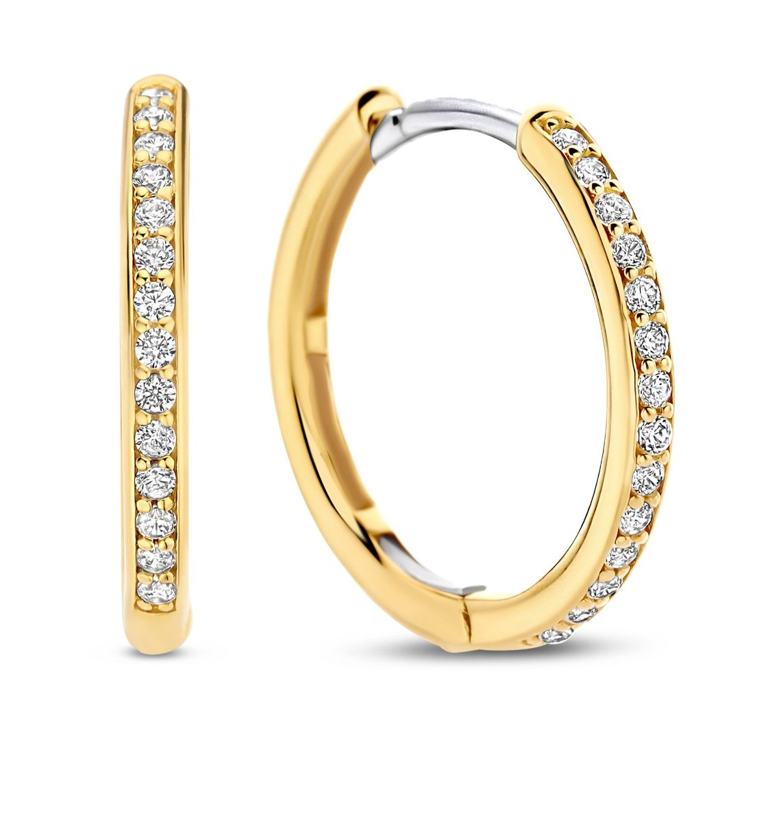 TI SENTO kullatut hopeakorvarenkaat zirkonioilla 18 mm 7959ZYI ovat monipuolinen asuste useisiin eri tyyleihin. Korvarenkaiden halkaisija on 18 mm, ja paksuus 2 mm, ja pukemista helpottaa saranamekanismi. Kokonaisuuden viimeistelee aito keltakultaus sekä upeat, synteettiset zirkoniat. TI SENTO-korut valmistetaan sterling-hopeasta, ja toimitetaan kotiin valmistajan kauniissa korurasiassa. TI SENTO -koruilla on 2 vuoden takuu, joka kattaa valmistus- ja materiaalivirheet.
