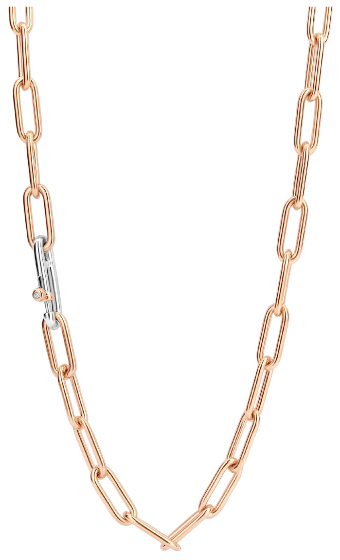 Muodikas TI SENTO 3947SR -kaulakoru on valmistettu sterling-hopeasta, joka on pinnoitettu 18k ruusukullalla. Kaulakorun pituus on 48 cm. Suorakaiteenmuotoiset lenkit ovat kooltaan 5 x 23 mm. Rannekoru kiinnitetään luotettavalla lukolla. TI SENTO -korut toimitetaan valmistajan alkuperäisessä rasiassa, ja niillä on 2 vuoden takuu, joka kattaa valmistus- ja materiaalivirheet.
