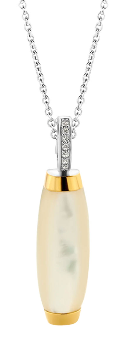 TI SENTO 6783MW -kaulakoru on valmistettu sterling-hopeasta. Kaulakorun 33 mm korkean ja 8,5 mm leveän helmiäisriipuksen ylä- ja alaosa on pinnoitettu 18k keltakullalla. Kokonaisuuden viimeistelee kirkkaat kristallit. TI SENTO -korut toimitetaan valmistajan alkuperäisessä rasiassa, ja niillä on 2 vuoden takuu, joka kattaa valmistus- ja materiaalivirheet.
