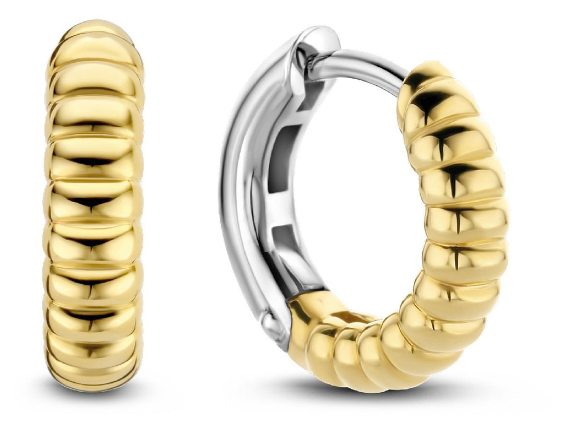 TI SENTO 7828GB -korvakorut on valmistettu sterling-hopeasta, joka on puoliksi pinnoitettu 18k keltakullalla. Rengaskorvakorujen pintakuviointi antaa korulle kaunista ilmettä. Korvakorujen halkaisija on 14 mm ja paksuus 3 mm. TI SENTO -korut toimitetaan valmistajan alkuperäisessä rasiassa, ja niillä on 2 vuoden takuu, joka kattaa valmistus- ja materiaalivirheet.