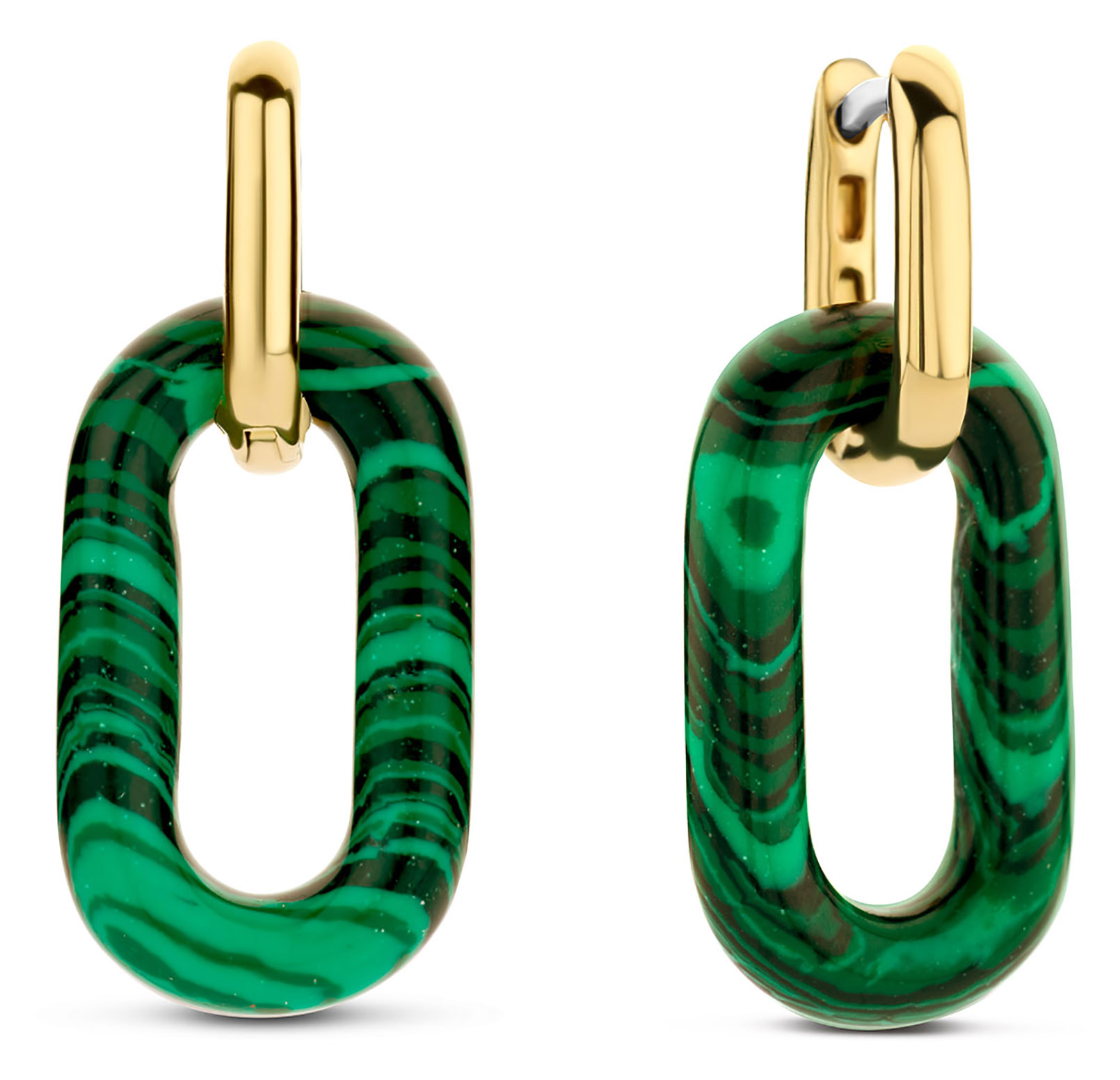 TI SENTO 7843MA -korvakorut on valmistettu 18-karaatin kullatusta sterling-hopeasta, ja niitä koristaa vihreä malakiitti. Vihreät Milano-korvakorut ovat pituudeltaan 35 mm. TI SENTO -korut toimitetaan valmistajan alkuperäisessä rasiassa, ja niillä on 2 vuoden takuu, joka kattaa valmistus- ja materiaalivirheet.