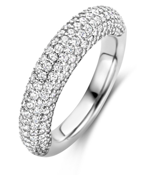 Monirivinen TI SENTO silver pave sormus 12287ZI/56 on kooltaan 56 (17,8 mm), ja sormuksen pintaa koristaa usean briljanttihiotun kiven ranskalainen pavé-istutus. Istutus takaa, että korun kivet taittavat valoa kauniisti, ja monirivisormus on näyttävä kaikissa tilanteissa. Sormuksen leveys on 5 mm, ja somuksen runko on rodinoitua sterling-hopeaa. Rodinointi pitää hopean tummumattomana. TI SENTO -korut toimitetaan valmistajan alkuperäisessä rasiassa, ja niillä on 2 vuoden takuu, joka kattaa valmistus- ja materiaalivirheet.