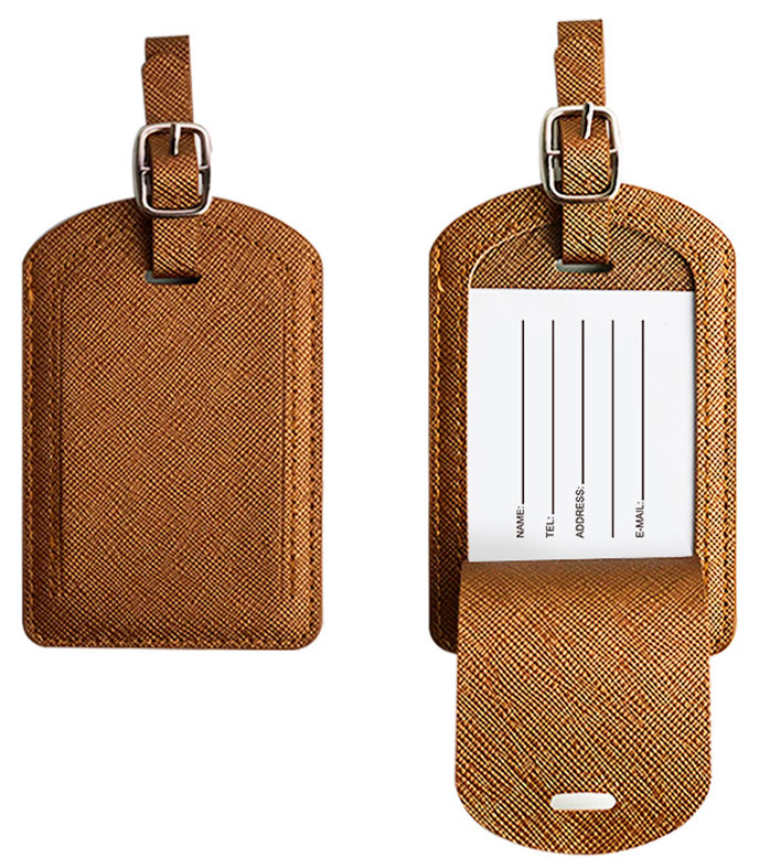 Tiera Brown on laadukkaasta tekonahasta valmistettu yksivärinen matkalaukkutagi, joka sulkeutuu ruostumattomasta teräksestä valmistetulla soljella. Tagissa on kiinni nahkahihna, jonka pituus on säädettävissä. Ruskean tagin saat helposti kiinnitettyä matkalaukkuusi ja näin yhteystietosi kulkevat aina matkalaukkusi mukana. Tagin kääntöpuolella on yhteystietokortti, johon voit täyttää nimesi, osoitteesi, puhelinnumerosi sekä sähköpostiosoitteesi.