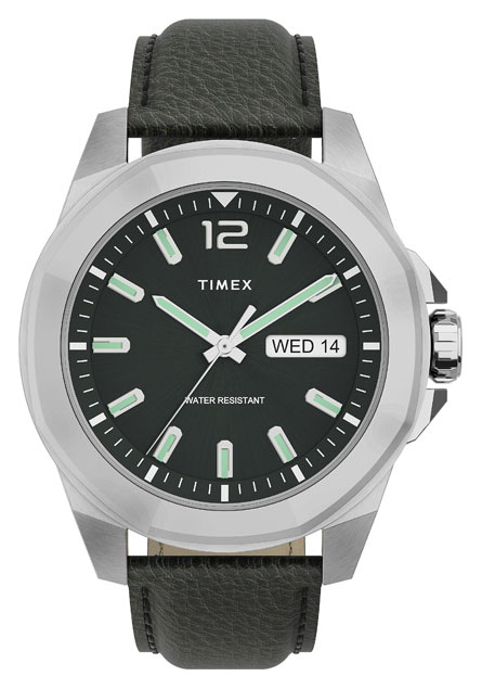 Timex Essex Avenue TW2U82000 on tyylikäs miesten kello kvartsikoneistolla. Kellon 44 mm leveä ja 10 mm paksu runko on valmistettu hopeanvärisestä ruostumattomasta teräksestä. Tyylikkään ulkonäön kruunaa vihreä nahkaranneke. Rannekellossa on vihreä kellotaulu, jossa kello kolmessa päivyri viikonpäivänäytöllä. Timex TW2U82000 kuuluu vesitiiviysluokkaan 50 m / 5 atm, joten se on rajoitetusti vesitiivis (uintia ei suositella). Timex-rannekelloilla on kahden vuoden takuu, ja ne toimitetaan valmistajan alkuperäisessä rasiassa.