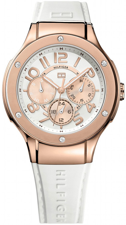 Sporttinen naisten Tommy Hilfiger 1781311 Ainsley rannekello. Rungon leveys on 39mm ja rannekkeen leveys 16mm. Kellossa päivyri, viikonpäivänäyttö sekä 24h näyttö Tommy Hilfiger kelloille myönnetään kahden vuoden takuu ja ne toimitetaan valmistajan alkuperäisessä rasiassa.