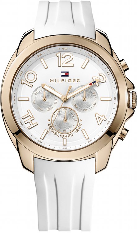 Huippuhieno naistenb Tommy Hilfiger 1781388 Serena rannekello silikoni rannekkeella. Kellon teräsrungon leveys on 42mm ja paksuus 12mm. Rannekkeen leveys on 18mm. Kellossa on päivyri, viikonpäivänäyttö sekä 24h näyttö. Tommy Hilfiger kelloille myönnetään kahden vuoden takuu ja ne toimitetaan valmistajan alkuperäisessä rasiassa.