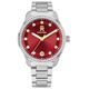 Tommy Hilfiger 1782794 naisten rannekellon kehykseen ja indekseihin on upotettu säihkyviä zirkonioita lisäämään hohtoa ja näyttävyyttä kellolle. Kvartsikoneistolla varustetussa kellossa on ruostumattomasta teräksestä valmistettu runko, joka on leveydeltään 36 mm ja paksuudeltaan 9,5 mm. Mineraalilasi suojaa punaista kellotaulua, jossa on päivyri klo 6 kohdalla sekä luminoidut viisarit ja indeksit, jotka auttavat kellotaulun lukemisessa hämärässä. Teräsrannekkeen leveys kiinnityskohdasta on 17 mm. Tommy Hilfiger 1782794 kuuluu vesitiiviysluokkaan 50m / 5atm eli se on rajoitetusti vesitiivis (uintia ei suositella).