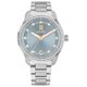 Tommy Hilfiger 1782795 naisten rannekellon kehykseen ja indekseihin on upotettu säihkyviä zirkonioita lisäämään hohtoa ja näyttävyyttä kellolle. Kvartsikoneistolla varustetussa kellossa on ruostumattomasta teräksestä valmistettu runko, joka on leveydeltään 36 mm ja paksuudeltaan 9,5 mm. Mineraalilasi suojaa harmaan sinistä kellotaulua, jossa on päivyri klo 6 kohdalla sekä luminoidut viisarit ja indeksit, jotka auttavat kellotaulun lukemisessa hämärässä. Teräsrannekkeen leveys kiinnityskohdasta on 17 mm. Tommy Hilfiger 1782795 kuuluu vesitiiviysluokkaan 50m / 5atm eli se on rajoitetusti vesitiivis (uintia ei suositella).