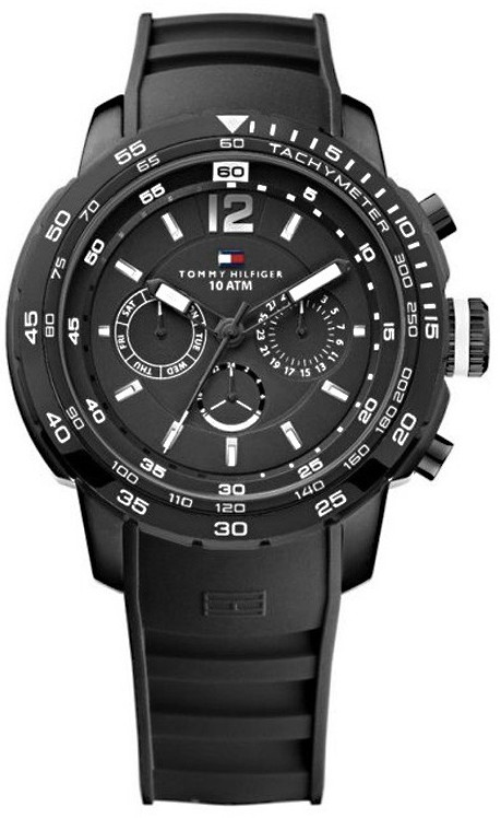 Tyylikkään mustanpuhuva Miesten Tommy Hilfiger Mariner 1790889 rannekello silikonirannekkeella. Kellon rungon leveys on 45mm. Rannekkeen leveys on 22mm. Kellossa päivyri, kaksoisaika sekä viikonpäivänäyttö. Kellossa kierrenuppi. Tommy Hilfiger kelloille myönnetään kahden vuoden takuu ja ne toimitetaan valmistajan alkuperäisessä rasiassa.