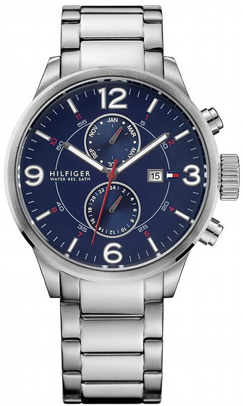 Miesten Tommy Hilfiger Brady 1790893 rannekello. Kellon rungon leveys on 46mm. Rannekkeen leveys on 22mm. Kellossa päivyri, kaksoisaika sekä kuukausinäyttö. Kellossa erittäin tummansininen kellotaulu. Tommy Hilfiger kelloille myönnetään kahden vuoden takuu ja ne toimitetaan valmistajan alkuperäisessä rasiassa.