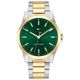 Tommy Hilfiger 1792192 miesten rannekellossa yhdistyy toimivuus ja tyylikäs ulkomuoto. Kvartsikoneistolla varustettu rannekello on valmistettu ruostumattomasta teräksestä ja sen runko on leveydeltään 42 mm ja paksuudeltaan 10 mm. Kellossa on kullanvärinen kehys, viisarit, indeksit sekä keskikohta rannekkeessa, jotka tuovat hienoa kontrastia teräsrunkoa ja ranneketta vasten. Mineraalilasi suojaa vihreää kellotaulua. Kaksivärisen teräsrannekkeen leveys kiinnityskohdasta on 22 mm. Tommy Hilfiger 1792192 kuuluu vesitiiviysluokkaan 50m / 5atm eli se on rajoitetusti vesitiivis (uintia ei suositella).