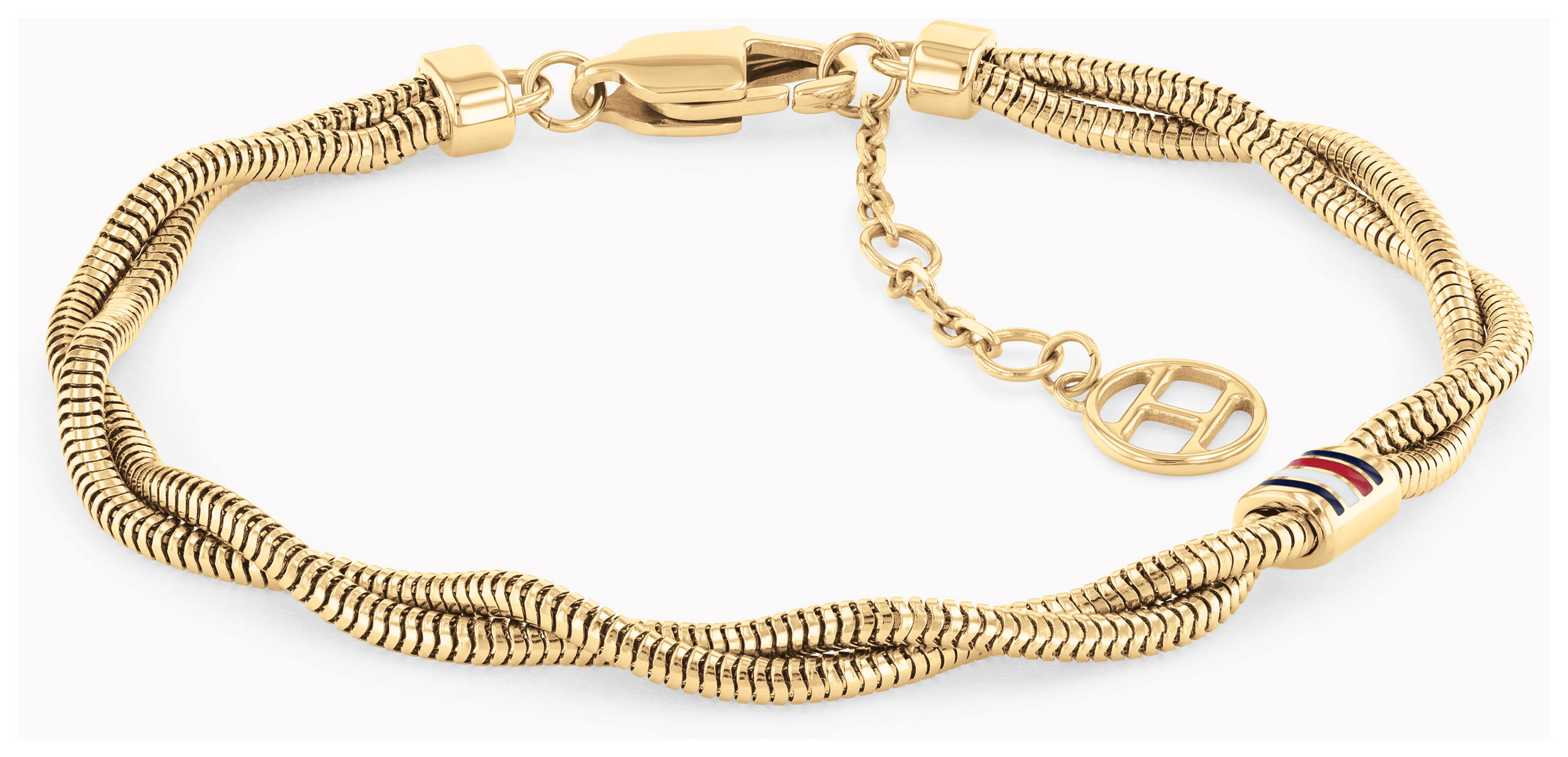 Tommy Hilfiger Braided Metal 2780689 -rannekoru on valmistettu kullanvärisestä ruostumattomasta teräksestä. Ranneketjun sisäympärysmitta on 17,8 - 22,9 cm. Tommy Hilfiger -korut toimitetaan valmistajan alkuperäisessä pakkauksessa.
