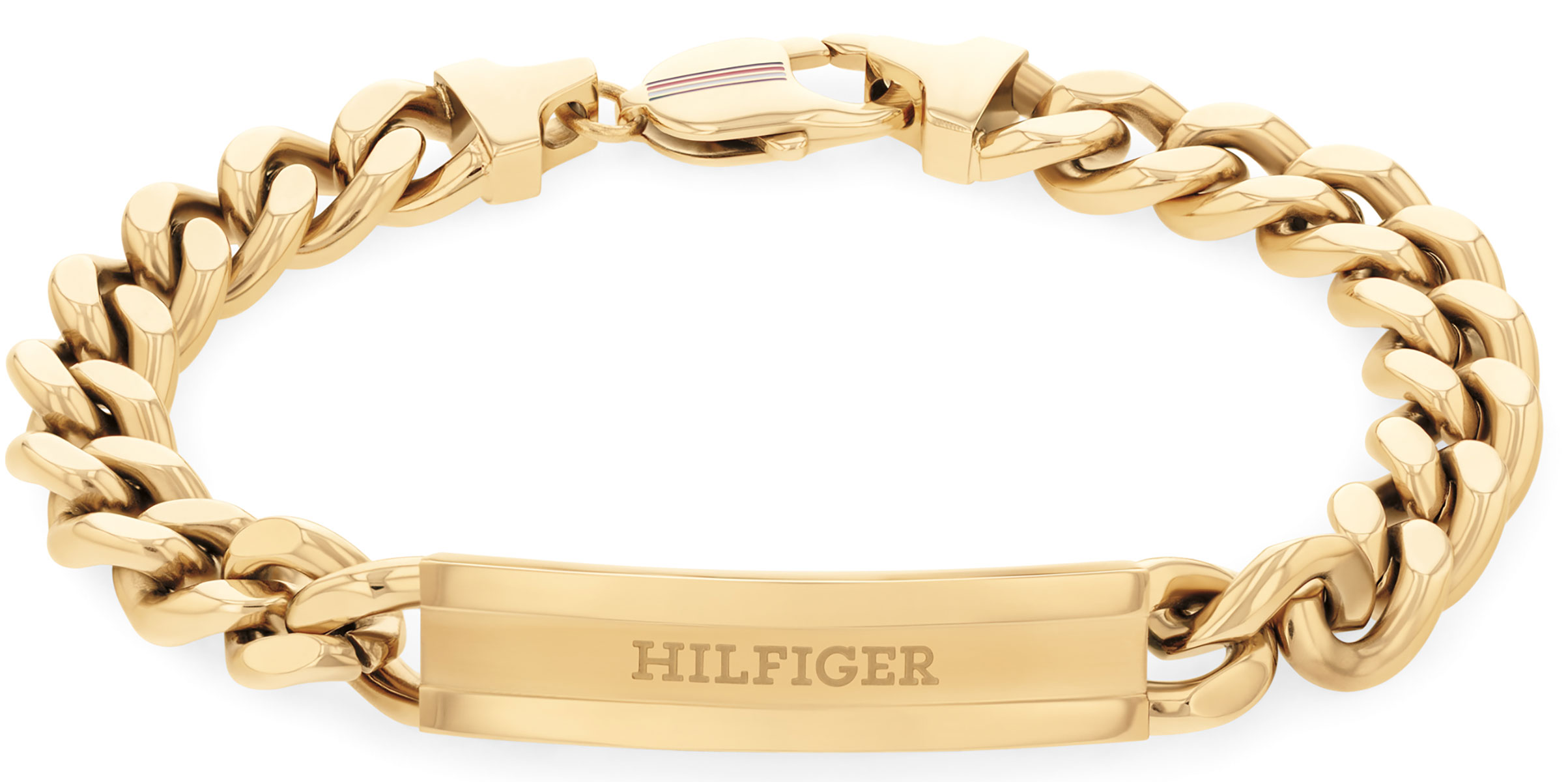 Tommy Hilfiger Clash 2790580 on tukeva ja tyylikäs rannekoru panssariketjulla jokapäiväiseen käyttöön. Ketju on sisäympärysmitaltaan 19 cm. Kullanväriset ketju ja laatta on valmistettu kestävästä ruostumattomasta teräksestä ja ranneketjussa on papukaijalukko. Tommy Hilfiger -korut toimitetaan valmistajan alkuperäisessä pakkauksessa.