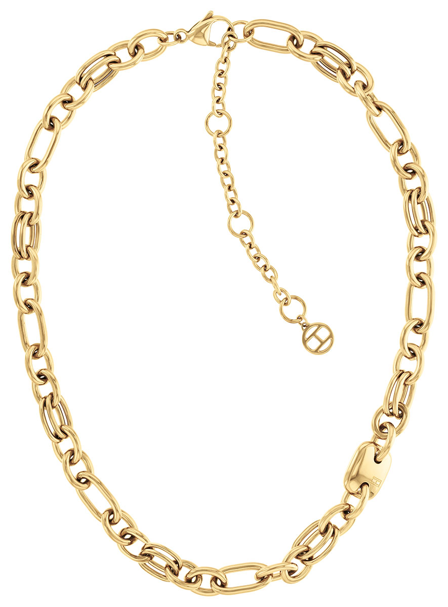 Tommy Hilfiger Contrast Link Chain 2780784 on elegantti kullanvärinen naisten kaulakoru. Kaulaketju on valmistettu tyylikkäästä kullan värisestä ruostumattomasta teräksestä ja sen pituus on säädettävissä välillä 38 cm - 40 cm. Kaikki Tommy Hilfiger -korut toimitetaan valmistajan alkuperäisessä pakkauksessa.