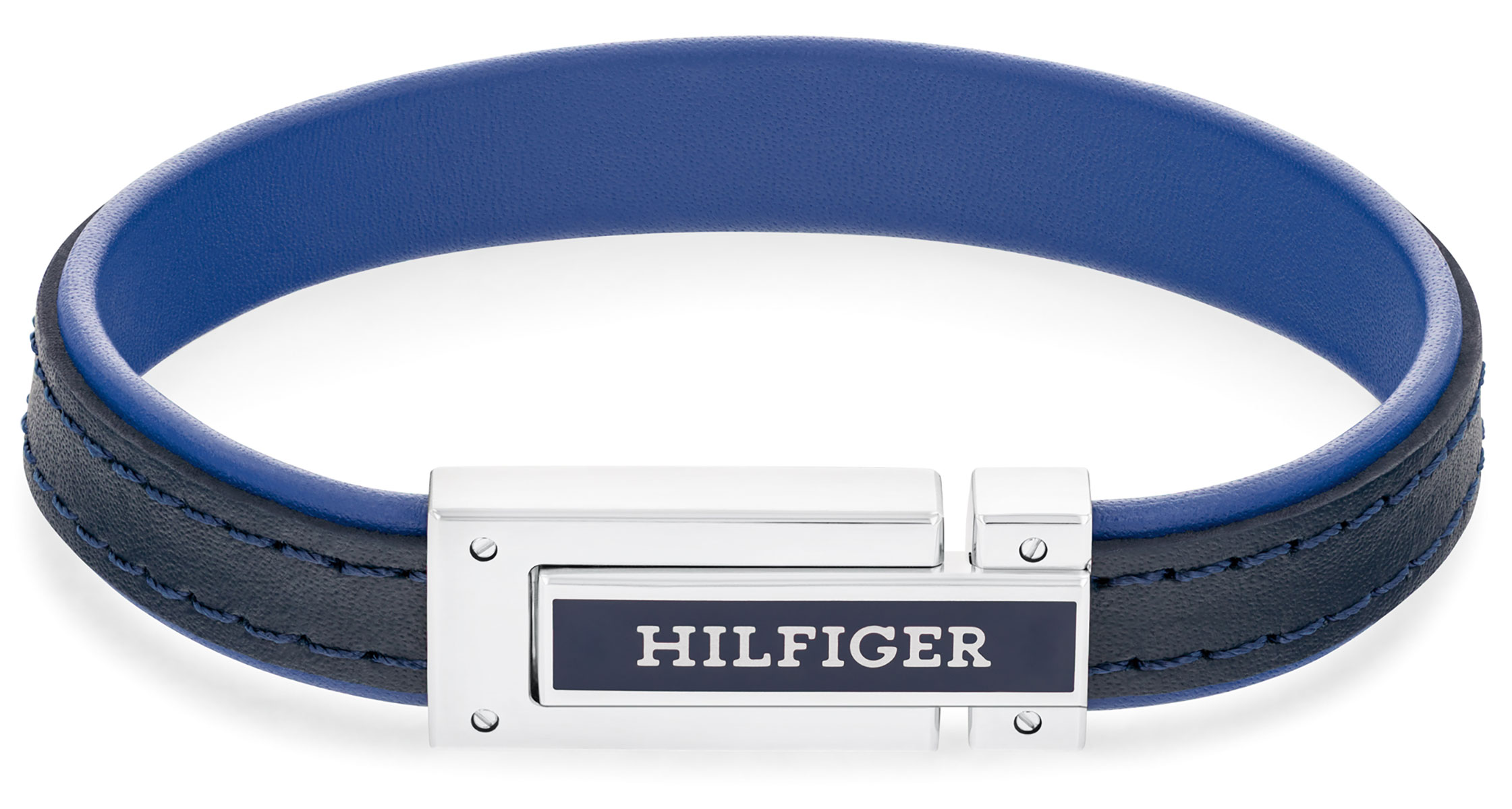 Tommy Hilfiger Flat 2790558 on tyylikäs sininen miesten nahka- ja teräsrannekoru, jossa hopeanvärinen solki Hilfiger -logolla. Rannekorun sisäympärysmitta on 19 cm. Tommy Hilfiger -korut toimitetaan valmistajan alkuperäisessä pakkauksessa.