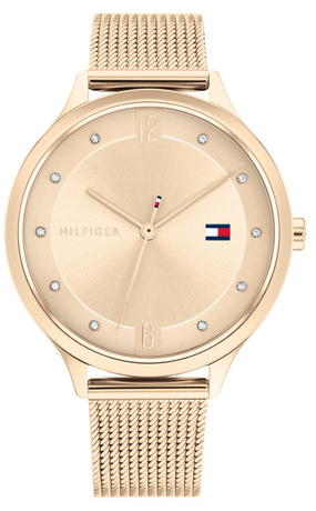 Tommy Hilfiger GRACE ionic plated carnation gold steel 1782431 on ajaton naisten kello kaikkiin tilanteisiin. Ruusukultaisen rungon leveys on 38 mm, ja ilmeen viimeistelee samansävyinen mesh-ranneke ja kellotauluun istutetut kirkkaat kristallit. Tommy Hilfiger -kelloilla on 2 vuoden takuu, ja ne toimitetaan valmistajan alkuperäisessä rasiassa.