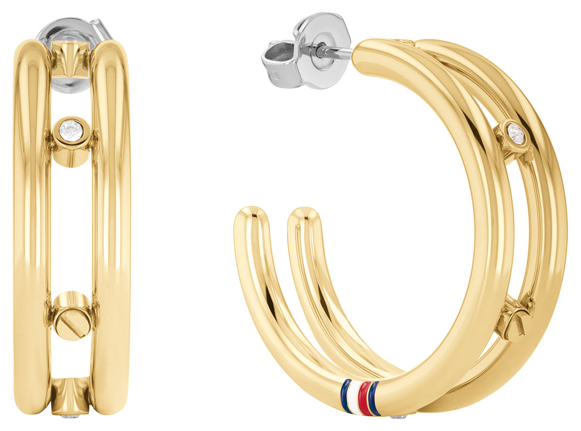 Tommy Hilfiger Hardware 2780615 ovat tyylikkäät naisten korvarenkaat, jotka on valmistettu kullanvärisestä ruostumattomasta teräksestä. Koru on koristeltu kirkkaalla zirkonialla. Korvakorujen halkaisija on 24 mm. Tommy Hilfiger -korut toimitetaan valmistajan alkuperäisessä pakkauksessa.