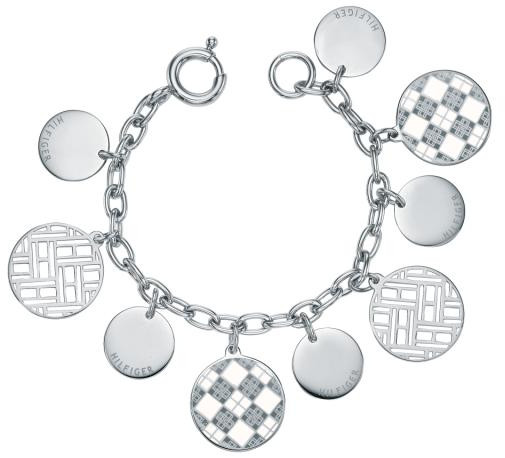 Teräksinen naisten Tommy Hilfiger rannekoru 2700074. Korun pituus on 20cm. Korussa on yhdeksän ympyrää, joista isompien halkaisija on 24mm ja pienempien 18mm. Koru toimitetaan valmistajan alkuperäisessä rasiassa.