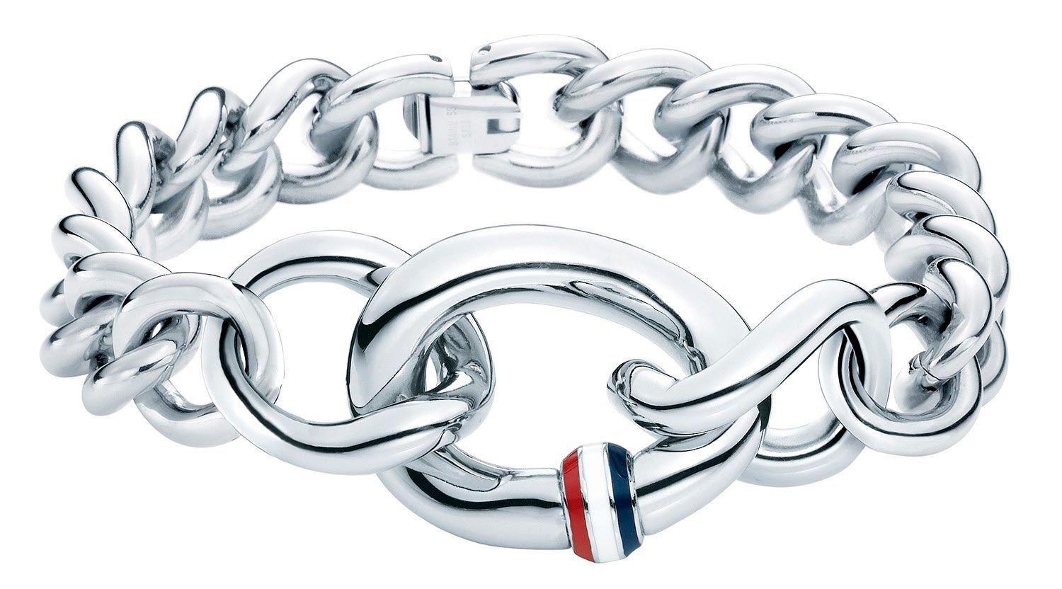 Teräksinen naisten Tommy Hilfiger rannekoru 2700404. Korun leveys on 13-23mm ja pituus 19,5cm. Koru toimitetaan valmistajan alkuperäisessä rasiassa.