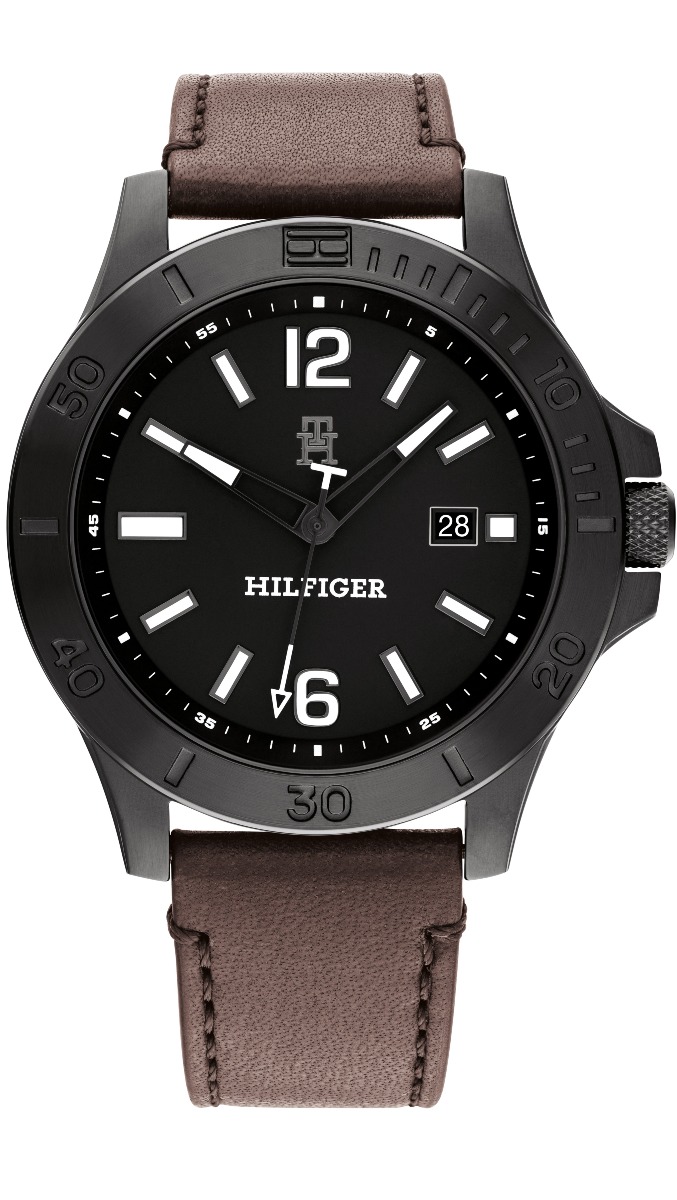 Tommy Hilfiger Ryan Le dark brown leather strap 1710530 on tyylikkään virtaviivainen miesten rannekello vapaa-ajan asuun. Kellossa on 46 mm leveä, suuri runko, sekä näyttävät panerai-tyyppiset indeksit, jotka ovat paitsi helppolukuiset, ne myös luminoituvat pimeässä. Erillinen sekuntikehä löytyy mustasta bezelistä, ja kokonaisuuden viimeistelee harmaat yksityiskohdat sekä tikattu, tummanruskea, italialainen nahkaranneke. Tommy Hilfiger -kelloilla on 2 vuoden takuu, ja ne toimitetaan valmistajan alkuperäisessä rasiassa.