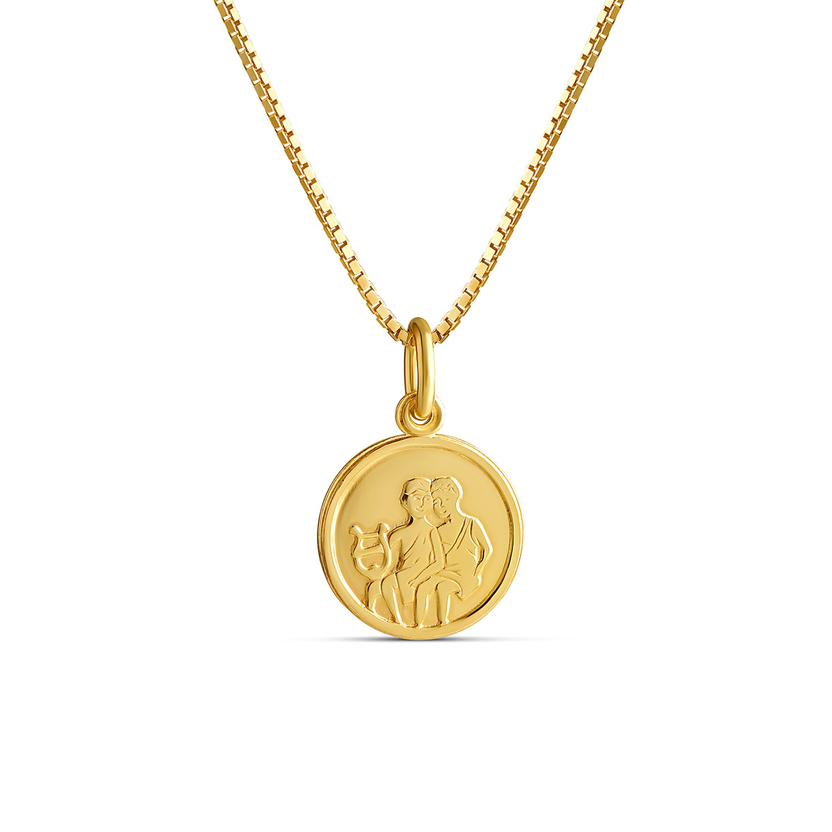 Top Goldin tyylikäs ja ajaton Kaksonen-horoskooppiriipus on kaunis tapa tuoda esiin omaa persoonallisuutta tai ilahduttaa lahjana. Riipuksessa on hienostunut Kaksonen symboli, joka on toteutettu tarkasti viimeisteltyyn pyöreään muotoon. Riipuksen koko on 11,5 mm. Kullattu pinta antaa korulle lämpimän ja ylellisen sävyn.