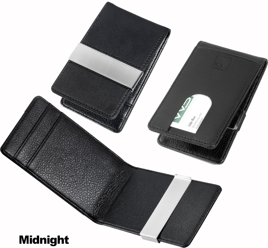 Ohut ja tyylikäs Troika lompakko rahanpidikkeellä. Kortti on RFID suojattu eli kortteja ei voi etälukea. Troika Duo Leather -korttikoteloissa ulkopuoli on aitoa nahkaa ja sisäpuoli nahkajäljitelmää. Siinä on kolme korttitaskua kohokuvioiduille korteille, mutta se soveltuu hyvin myös viidelle tavalliselle kortille. Lompakosta on saatavilla useita eri värivaihtoehtoja! Tyhjän lompakon ulkomitat ovat 68x110m ja paksuus n.10mm