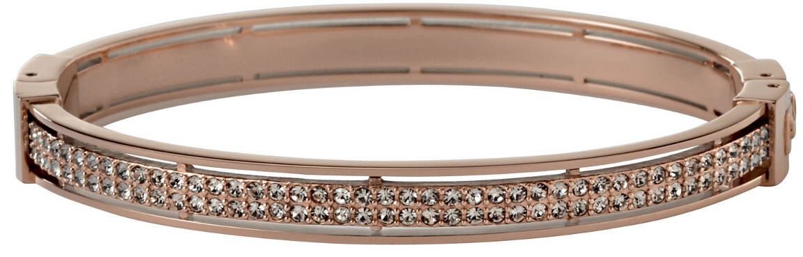 Fossil JF00104791 -rannekorussa yhdistyvät punakulta ja koristekivet luoden rennon mutta säihkyvän lookin. Rannekoru on valmistettu punakultaisesta ruostumattomasta teräksestä ja se on koristeltu zirkonia-kivin. Korussa on taittolukitus. Korun läpimitta on 7cm. Fossil -korut toimitetaan valmistajan alkuperäisessä pakkauksessa.