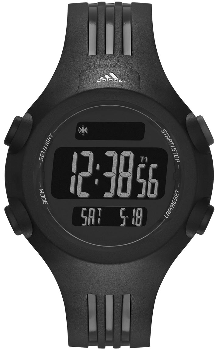 Adidaksen sporttinen kello, joka käy sekä miehille että naisille. Kellon rungon leveys on 42mm ja rannekkeen 17mm. Runko ja ranneke on valmistettu muovista. Kellossa on myös päivyri, ajanotto ja herätys. Adidas kelloille myönnetään 2 vuoden takuu ja ne toimitetaan valmistajan alkuperäisessä rasiassa.