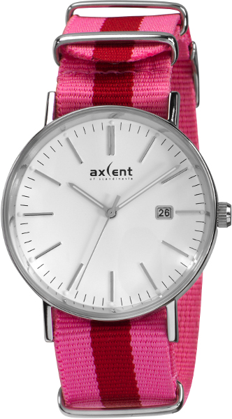 Axcent Vintage X58004-135 -rannekellossa on kaunis pinkki-punaraitainen kangasranneke ja valkoinen kellotaulu. Kellon runko on valmistettu ruostumattomaste teräksestä ja sen leveys on 42mm. Kangasrannekkeen leveys on 22mm. Axcent kelloille myönnetään 2 vuoden takuu ja ne toimitetaan valmistajan alkuperäisessä rasiassa.