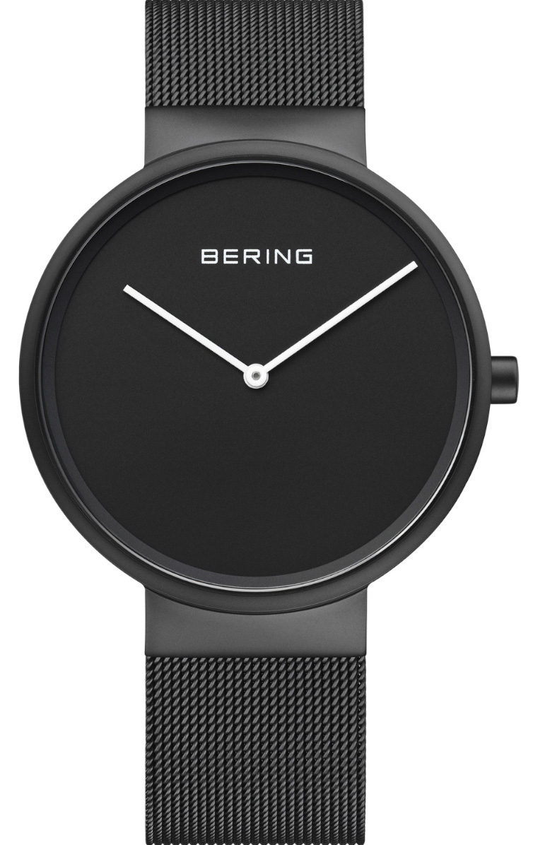 Kellon mattamusta runko on valmistettu puhtaasta, laadukkaasta, ruostumattomasta kirurgin teräksestä (316L), kellossa on musta teräsmesh-ranneke, ja klassisen Bering-ilmeen viimeistelee suuret valkoiset osoittimet. Kellotaulua suojaa naarmuuntumaton safiirilasi. Rungon leveys on 39 mm:iä ja ranneke on 18 mm:iä. Bering-kelloilla on 3 vuoden takuu ja ne toimitetaan valmistajan alkuperäisessä rasiassa.