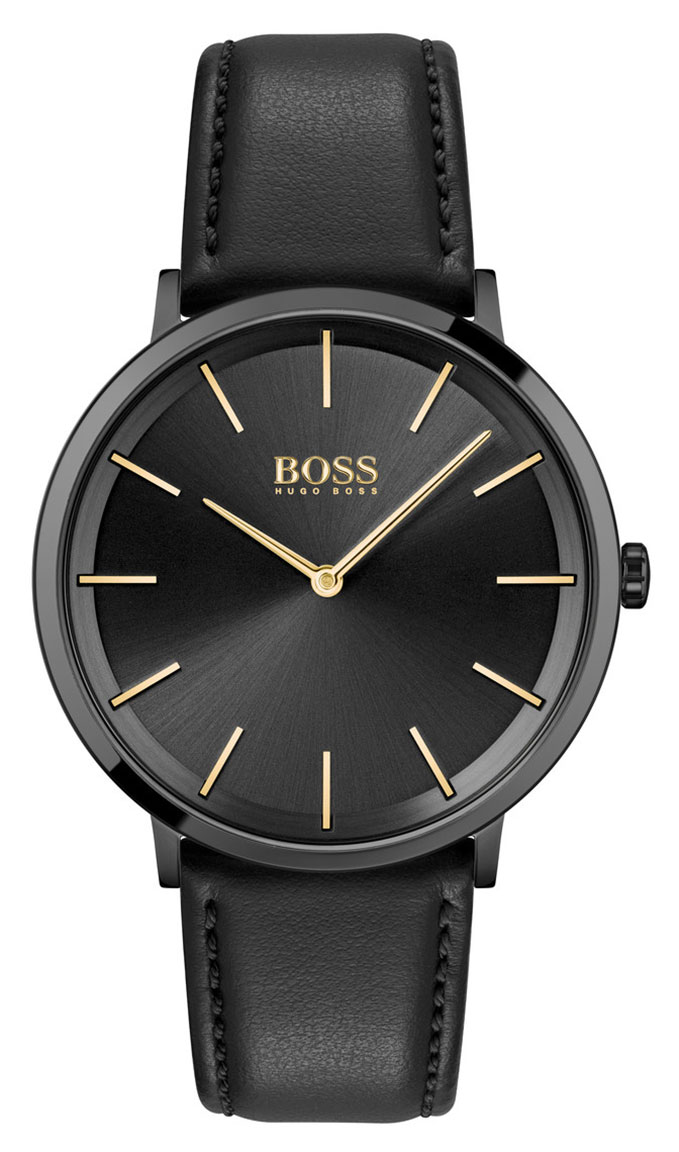 BOSS Skyliner Business 1513830 on tyylikäs pukukello mustalla nahkarannekkeella. Huomio kiinnittyy tässä kellossa upeaan mustaan sunray-kellotauluun, jossa on kullanväriset indeksit. Kellon musta runko on 40 mm leveä. 1513830-kello on roiskevesitiivis. BOSS -kelloille myönnetään 2 vuoden takuu ja ne toimitetaan valmistajan alkuperäisessä rasiassa.
