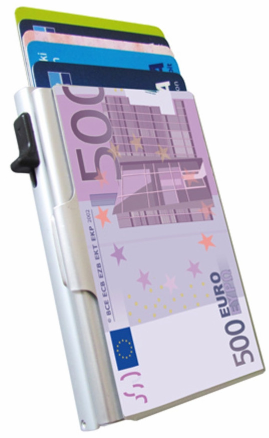 Bright Time POP 500 korttilompakko korttikotelossa on kätevä mekanismi, jolla kortit saa nousemaan kotelosta porrastetusti yhdellä painalluksella. Alumiinikotelossa on tilaa kuudelle kortille. Alumiini kotelon kyljessä on etulokero, johon saat lisäksi lisäkortteja, käyntikortit ja kuitit. Kotelo on myös RFID suojattu, joten kortteja ei voi etälukea, kun ne ovat kotelon sisällä. Kotelon leveys on 63mm, paksuus 15mm ja korkeus 98mm. Bright Time lompakot toimitetaan kirjeitse. Lompakon mukana ei tule lahjarasiaa.