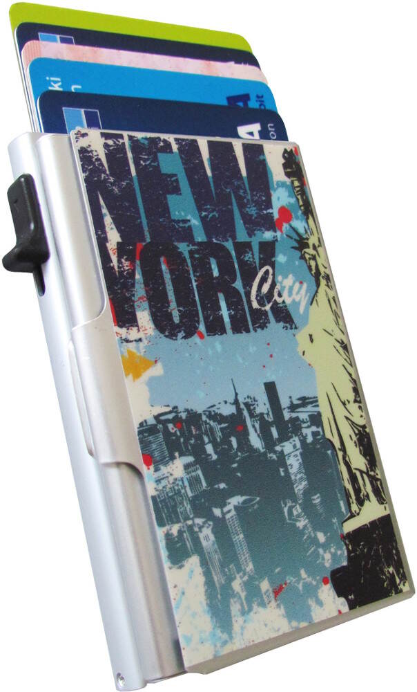 Bright time POP New York -korttikotelossa on kätevä mekanismi, jolla kortit saa nousemaan kotelosta porrastetusti yhdellä painalluksella. New York mallin kannessa on New York City teksti ja kaupungin silhuetti. Alumiinikotelossa on tilaa kuudelle kortille. Alumiini kotelon kyljessä on etulokero, johon saat lisäksi lisäkortteja, käyntikortit ja kuitit. Kotelo on myös RFID suojattu, joten kortteja ei voi etälukea, kun ne ovat kotelon sisällä. Kotelon leveys on 63mm, paksuus 15mm ja korkeus 98mm. Bright Time lompakot toimitetaan kirjeitse. Lompakon mukana ei tule lahjarasiaa.