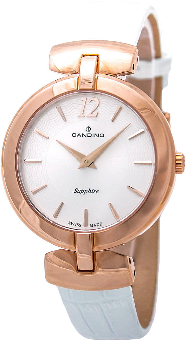 Candino C4567/1 Sapphire -rannekellossa on kestävä safiirilasi ja aito, valkoinen nahkaranneke. Rannekkeen leveys on 14 mm ja rungon halkaisija 32 mm. Runko on valmistettu ruostumattomasta teräksestä ja sen väri on kauniin punakultainen.