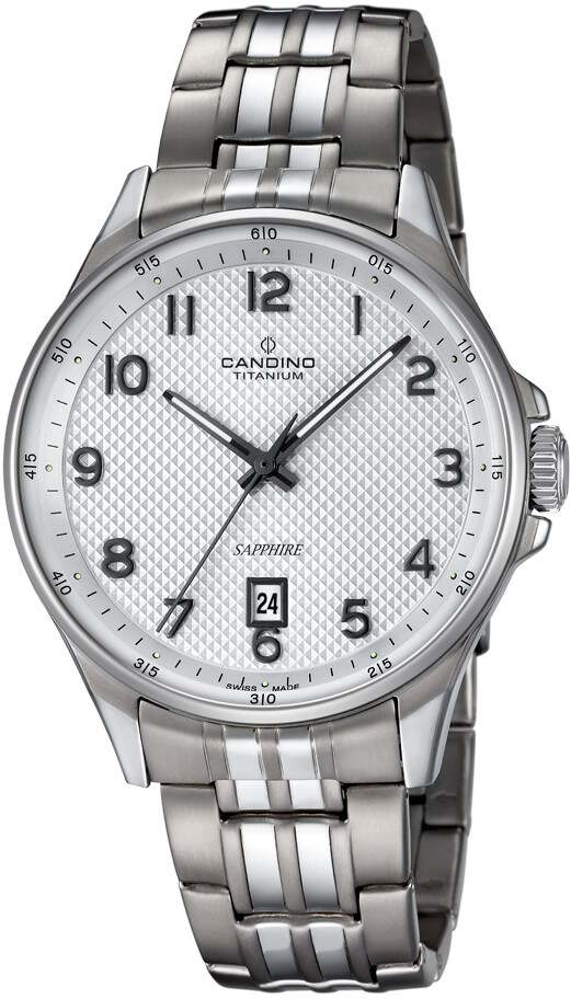 Candino C4606/1 Titanium Sapphire kellossa on hopeanvärinen selkeä kellotaulu. Lisäksi kello on 50m vesitiivis ja titaanirungon ja rannekkeen ansiosta todella kevyt. Kellon rungon leveys on 40mm ja paksuus 9mm. Rannekkeen leveys kiinnityskohdasta 20mm. Candino kelloille myönnetään 2 vuoden takuu ja ne toimitetaan valmistajan alkuperäisessä rasiassa.
