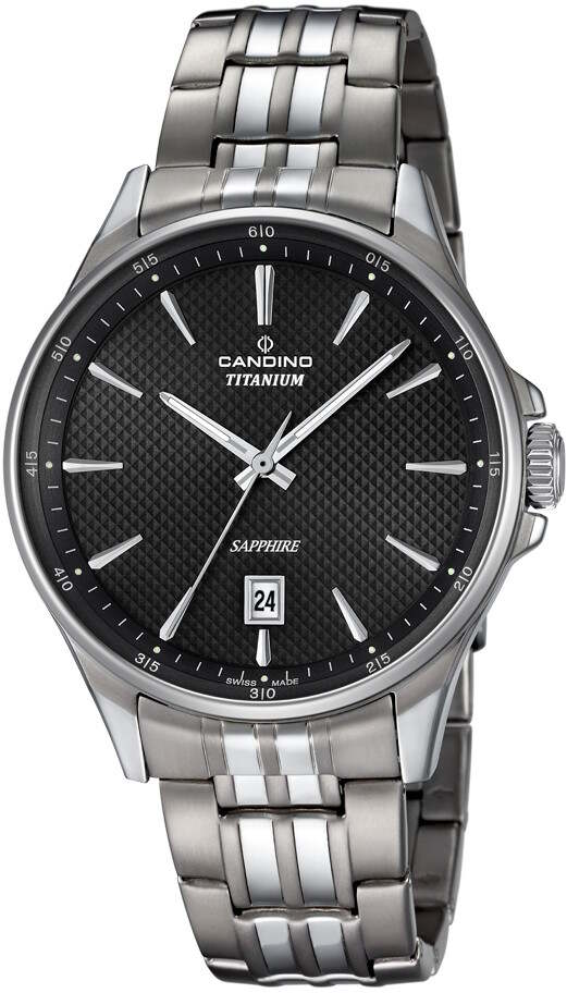 Candino C4606/4 Titanium Sapphire kellossa on musta selkeä kellotaulu. Lisäksi kello on 50m vesitiivis ja titaanirungon ja rannekkeen ansiosta todella kevyt. Kellon rungon leveys on 40mm ja paksuus 9mm. Rannekkeen leveys kiinnityskohdasta 20mm. Candino kelloille myönnetään 2 vuoden takuu ja ne toimitetaan valmistajan alkuperäisessä rasiassa.