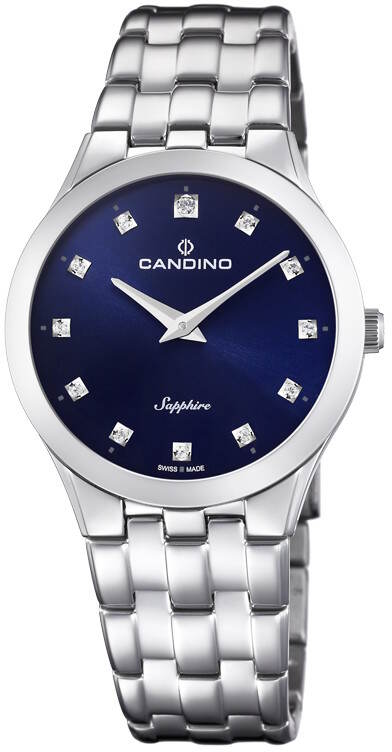 Candino C4700/2 on laadukas Sveitsiläinen naisten kello. Kellon runko ja ranneke ovat valmistettu ruostumattomasta teräksestä. indeksejä koristavat kirkkaat zirconia korukivet. Hopeanväristä kellotaulua suojaa kestävä safiirilasi. Kellon rungon leveys on 31,6mm ja paksuus 6,8mm. Candino-kelloille myönnetään 2 vuoden takuu ja ne toimitetaan valmistajan alkuperäisessä pakkauksessa.