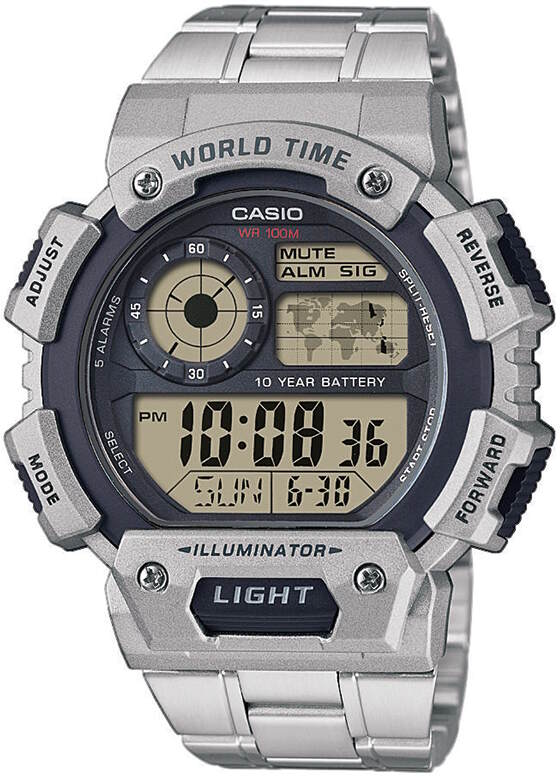 Casio AE-1400WHD-1AVEF -kellossa on jopa 10 vuoden paristonkesto. Kellossa on teräsranneke. Ominaisuuksina LED taustavalo, multiaika (4 eri kaupunia), maailmanaika, ajanotto, ajastin, 5 hälytystä, ikuinen kalenteri, tastatuntisignaali, näppäinäänet päälle/pois ja 12/24h näyttö. Kellon rungon leveys 51,4 mm ja paksuus 14,4 mm. Paino 49,0 grammaa. Casio kelloille myönnetään 2 vuoden takuu ja ne toimitetaan valmistajan alkuperäisessä rasiassa.