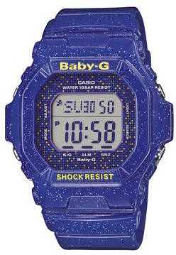 Casion Baby-G mallistoon kuuluva Casio Baby-G BG-5600GL-2ER rannekello on tyylikkään violetti! Kellon runko ja ranneke ovat kimallekoristeltuja. Kellossa on taustavalo, tasatuntisignaali, maailmanaika, ajantotto/sekkari, 5 hälytystä, kalenteri, 12/24h näyttö ja torkkuherätys. Kellon rungon leveys on 40mm ja paksuus 12mm. Casio kelloille myönnetään 2 vuoden takuu ja ne toimitetaan valmistajan alkuperäisessä rasiassa.