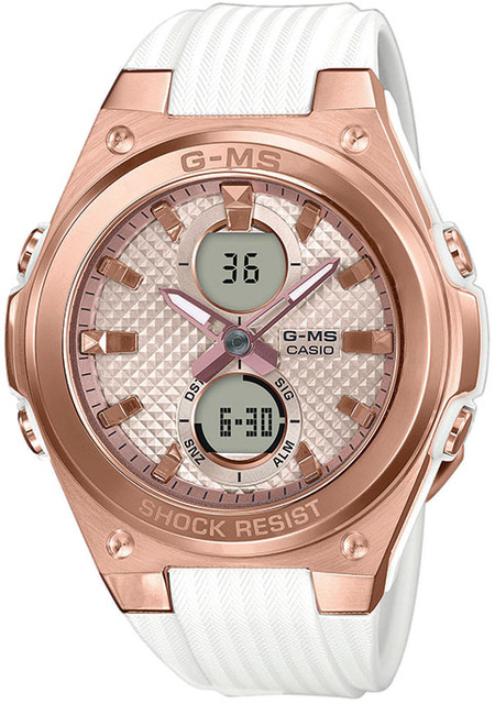 Casio BABY-G MSG-C100G-7AER Basic on urbaani versio casion monipuolisesta iskunkestävästä Baby-G-kellosta. Kellossa on kolme erillistä näyttöä, perinteiset analogiset viisarit ja kaksi digitaalista näyttöä, joissa on laajat ominaisuudet. Syvä kellotaulun pohja on kuvioitu, ja suuret ruusukullatut indeksit ja luminoidut osoittimet ovat helppolukuiset ja antavat kellolle näyttävää ilmettä. Valkoinen ilme jatkuu kellon vaaleassa muovirannekkeessa ja tekee kellosta kevyen ranteessa.