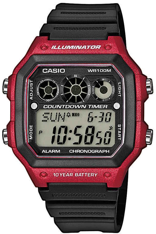 Casio Collection AE-1300WH-4AVEF kellossa on punainen runko ja musta ranneke. Ominaisuuksina LED taustavalo, maailmanaika, ajanotto, 9 esiasetettua ajastinta, hälytys/herätys, ikuinen kalenteri ja 12/24h näyttö. Kellon rungon leveys 42,1 mm ja paksuus 12,5 mm. Paino 39,0 grammaa. Casio kelloille myönnetään 2 vuoden takuu ja ne toimitetaan valmistajan alkuperäisessä rasiassa.