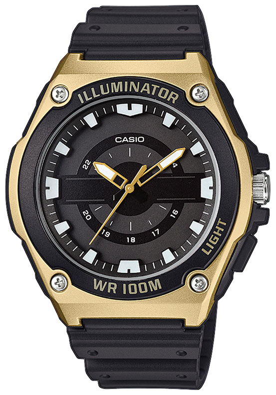 Casio Collection Illuminator MWC-100H-9AVEF on ulkonäöltään varsin futuristinen miesten rannekello. Tämä malli on varustettu LED-valolla, ja 10 ATM -luokituksellaan se kestää hyvin myös uimista. Kellolla on painoa ainoastaan 42 grammaa, rungon leveys on 46,7 mm ja paksuus 13 mm.