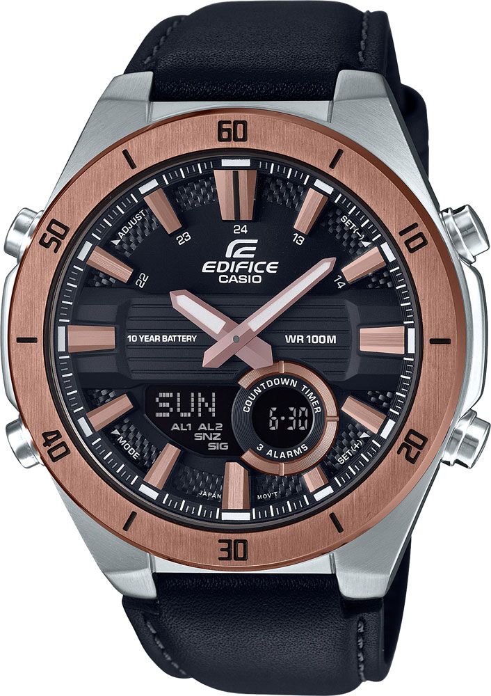 Casio Edifice -sarja toimii tiiviissä yhteistyössä F1-talli Scuderia Toro Rosson kanssa. Maksimaalista tarkkuutta edellyttävä työ ja liikkuva elämäntyyli vaativat myös kellolta paljon. Uusinta teknologiaa ja päätä huimaavaa vauhtia rakastavalle ERA-110GL-1AVEF -rannekello onkin täydellinen valinta. Tämä malli hyödyntää tehokkaasti mm. Telememo-ominaisuutta, jolla voit tallentaa nopeasti esim. yhteystietoja. Laadukkaasta ja modernista ulkomuodosta vastaavat teräksinen runko ja musta nahkaranneke, mineraalilasi sekä upea kuparinvärinen kehä.
