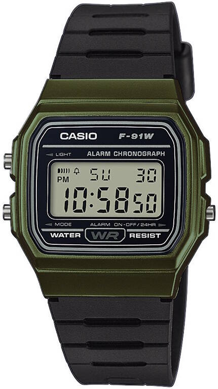 Casio F-91WM-3AEF on klassinen Casion retromalli vihreällä rungolla. Kellon rungon leveys 35,2 mm. Ominaisuuksina LED-taustavalo, ajanotto, hälytys, tasatunti signaali, 12/24h näyttö, automaattinen kalenteri ja 7 vuoden paristo. Kello painaa vain 21 grammaa. Casio kelloille myönnetään 2 vuoden takuu ja ne toimitetaan valmistajan alkuperäisessä rasiassa.